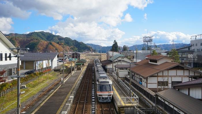 《你的名字》曾在岐阜县飞驒古川站取景,从车站过道上能看到连绵的群山