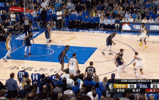 反观独行侠的内线,鲍威尔、克莱伯和贝尔坦斯们虽然非常努力,但是,他们本身的护筐能力实在有限,无法顶住鲁尼、库里、克莱和维金斯们的冲击。