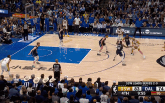 而勇士的进攻如图所示,库里和格林总能敏锐地观察到队友走位,送出手术刀般的妙传。这是两队之间,经验、处理球能力和默契度的现实差距,体现在赛场:独行侠30粒进球来自18次助攻,助攻率60%;而勇士38粒进球来自28次助攻,助攻率高达73.7%。