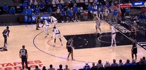 卡莱尔通过场上局势又进行了攻防细化,为避免东契奇陷入卡哇伊的死亡缠绕,独行侠提速抢转换进攻,利用快船退守就近落位找人,东契奇不再呼叫挡拆直接在转换行进间持球追打雷吉-杰克逊和巴图姆;防守端调整博班在2-3联防中的站位,博班、东契奇、铂金三人沉底线防守站位时让博班居中站位,避免在底线两翼被快船直接小打大。