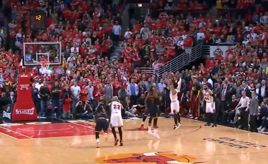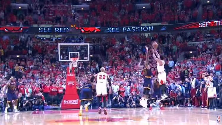 那场比赛两队一直焦灼到最后时刻,分差始终没能拉开。在比赛还剩下3秒时候,詹姆斯助攻JR-史密斯命中三分球将分差追到96平,之后的3秒钟,罗斯兜出来接到迈克-邓利维的传球,横移两步借着吉布森的掩护,在右侧弧顶位置拔起就射,最终球进灯亮打板入框完成绝杀。