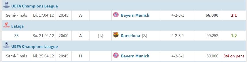 那个赛季皇马、巴萨上演“内战”,穆帅皇马百分夺冠。但是西甲双雄却双双栽在了欧冠半决赛,皇马点球不敌拜仁,巴萨输给了切尔西。