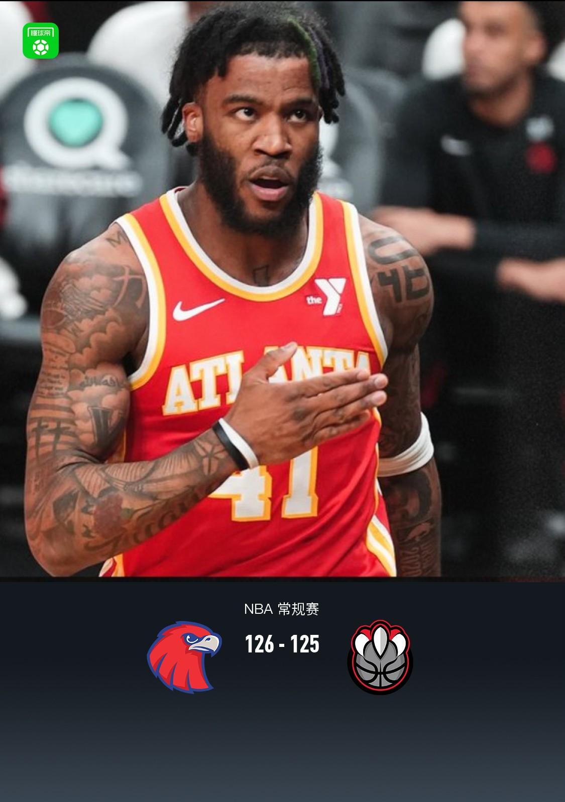 第四节老鹰特雷-杨拿下12分,猛龙斯科蒂-巴恩斯拿下10分,最终老鹰126-125战胜猛龙