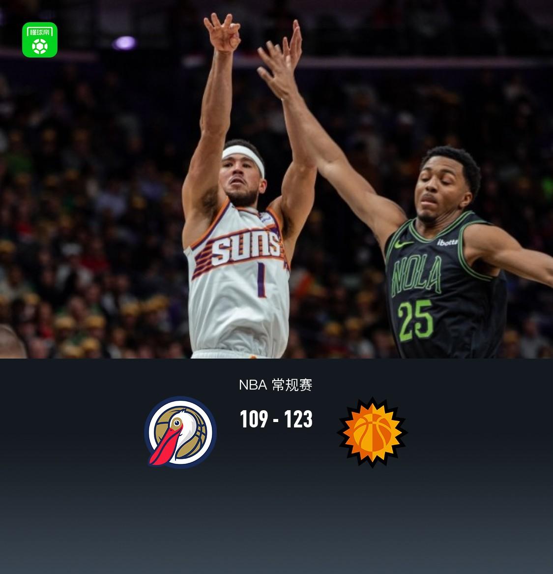 第四节鹈鹕乔丹-霍金斯拿下13分,太阳格雷森-阿伦拿下11分,最终鹈鹕109-123不敌太阳