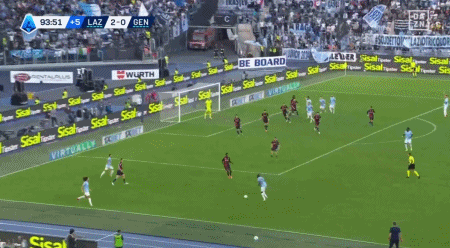 第90+4分钟,贝西诺头球破门锁定比分,拉齐奥3-0热那亚