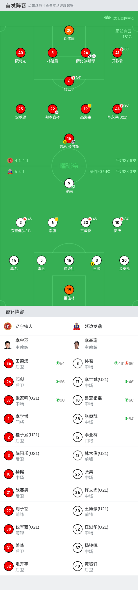 在中国足球甲级联赛第23轮的比赛中,辽宁铁人主场迎战延边龙鼎。上半场安以恩头球被扑,随后安以恩打门又被扑出,下半场萨比尔-穆萨破门,卡洛斯单刀扩大比分,随后卡洛斯失单刀,罗南点射扳回一球。最终辽宁铁人以2-1的比分战胜了延边龙鼎,取得了这场比赛的胜利。