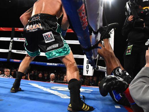 让人倍感遗憾的是,霍普金斯也没能挣脱时间的束缚,虽然他能凭借经验和技术上的优势将比赛带入一个相对均衡的场面,但几年前相比,霍普金斯在出拳力度、对抗性、反应能力、进攻和移动的速度等方面均下滑了不少。这也让年轻的对手更多的发挥空间。当比赛战至第八回合50秒,史密斯将霍普金斯堵在角落,用6记组合拳把老拳王彻底打出了擂台。霍普金斯的头部重重地摔在了地上,顿时没有回过味来。这样戏剧性的场面的确是始料未及的,霍普金斯在工作人员的搀扶下起身,但他的右脚踝重重地扭伤,已无法继续登台战斗,根据WBC规定,由于他没能在20秒内重新回到拳台,这样裁判组就宣布对手以技术击倒的方式取胜。而这场失利也是霍普金斯职业生涯第一次被击倒告负。