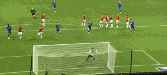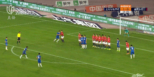 第10分钟,钱杰给主罚任意球,角度十分刁钻,只可惜差了一点,击中了边网。