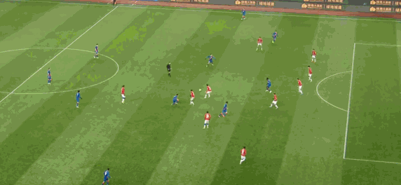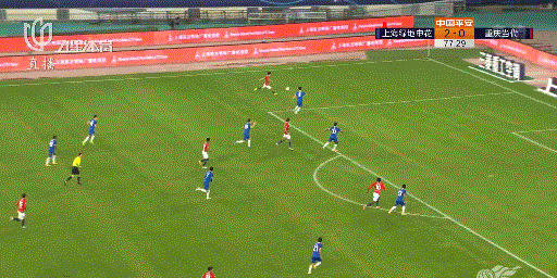 第14分钟,吴曦接钱杰给传球一记漂亮的转身摆脱,随后将球传递给中路接应球员,在重庆队两名球员包夹下,敦比亚错失射门机会。