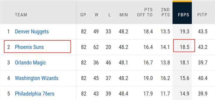 当年太阳场均利用快攻可以得到18.5分,排名联盟第二。