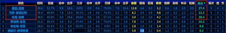 身边队友全部被抑制,原本自己单点串联,四面开花的效果打不出来了!最直接的体现就是——原本队内得分第二的马里昂,场均只能得到7.8分 !