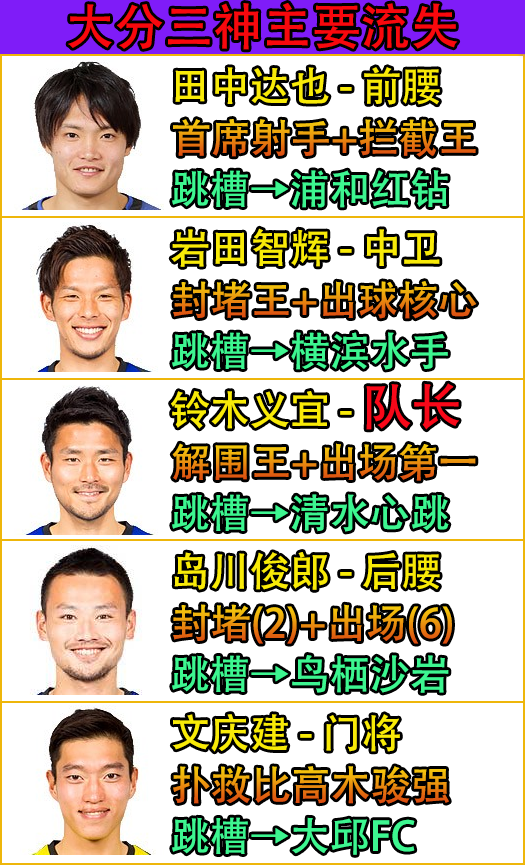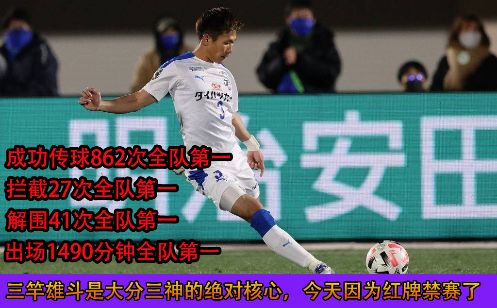另外,大分今天还有个非常不利的情况,他们的后防领袖,同时也是后场出球核心的三竿雄斗被禁赛了。
