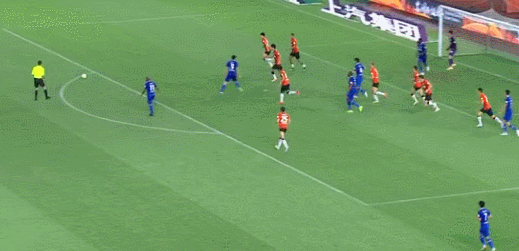 第71分钟,上港策动攻势,奥斯卡主罚右路角球传中,刘鑫瑜门前争顶解围,皮球恰击中队友廖承坚扬起的手臂,主裁判果断判罚点球。紧接着,胡尔克主罚点球起左脚推射左路命中,1-0,上港打破僵局。