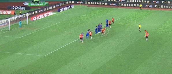 第56分钟,上港前场中路获得任意球,胡尔克主罚起左脚劲射,皮球越过人墙直奔球门,邵璞亮飞身跃起扑救托了一下,皮球随即击中球门横梁弹出。紧接着,永昌队员将球解围掉。