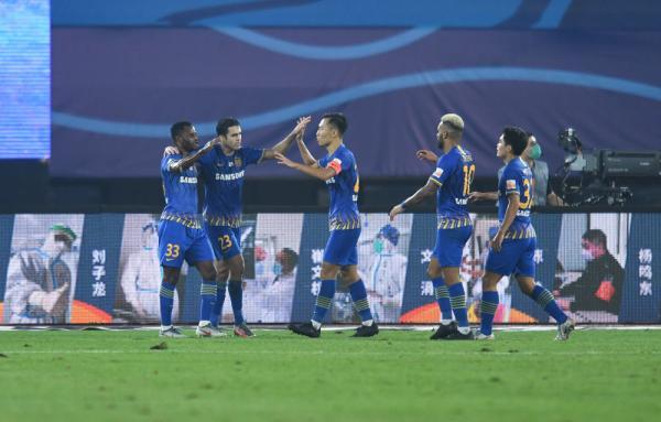 8月30日,在2020赛季中国足球协会超级联赛第一阶段(大连赛区)第八轮比赛中,江苏苏宁易购队以5比2战胜河南建业队。