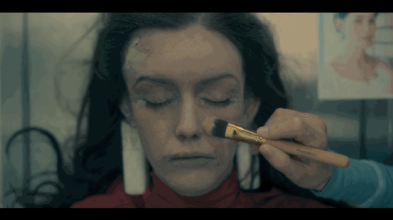 现在时间线中的大姐雪莉给死去的内尔补妆,镜头一切,和过去她给内尔化妆的画面连接在一起,