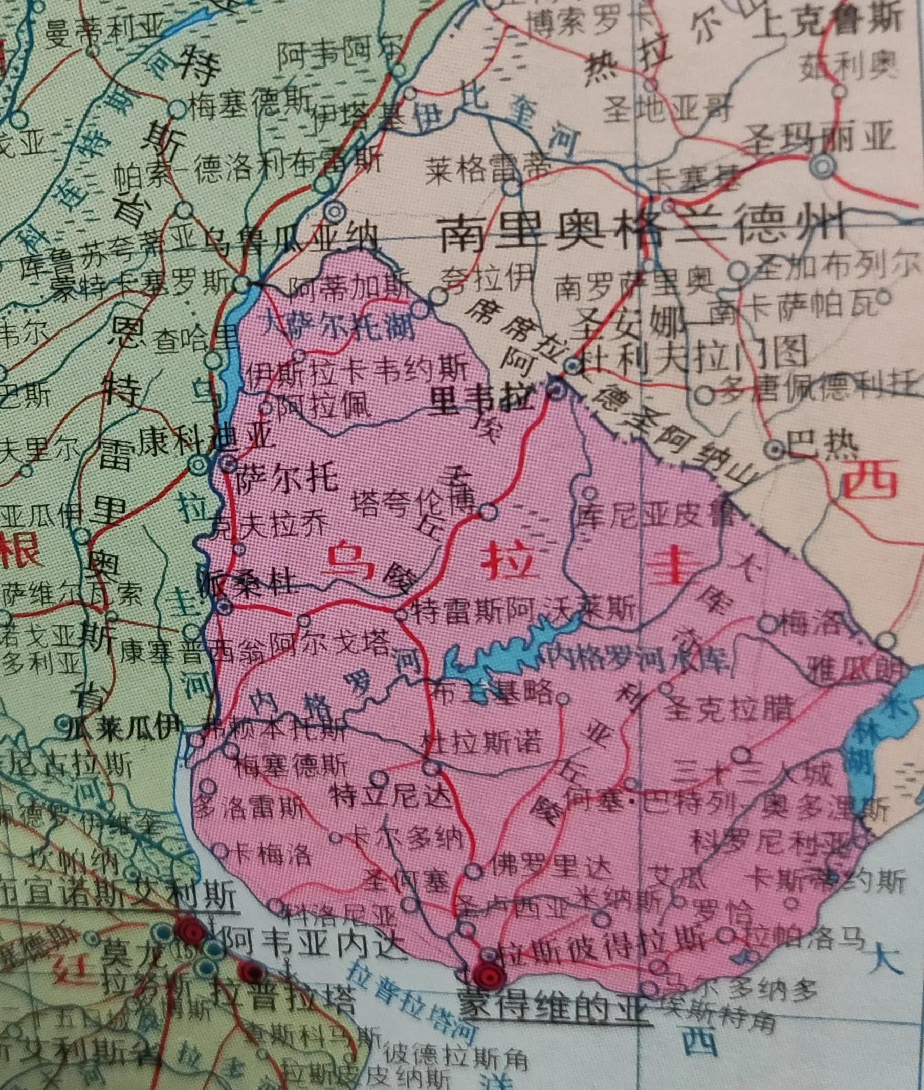 乌拉圭东岸共和国(西班牙语:República Oriental del Uruguay;英语:Oriental Republic of Uruguay),简称乌拉圭。位于南美洲的东南部,乌拉圭河与拉普拉塔河的东岸,北邻巴西,西接阿根廷,东南濒大西洋。海岸线长660公里。属温带气候。