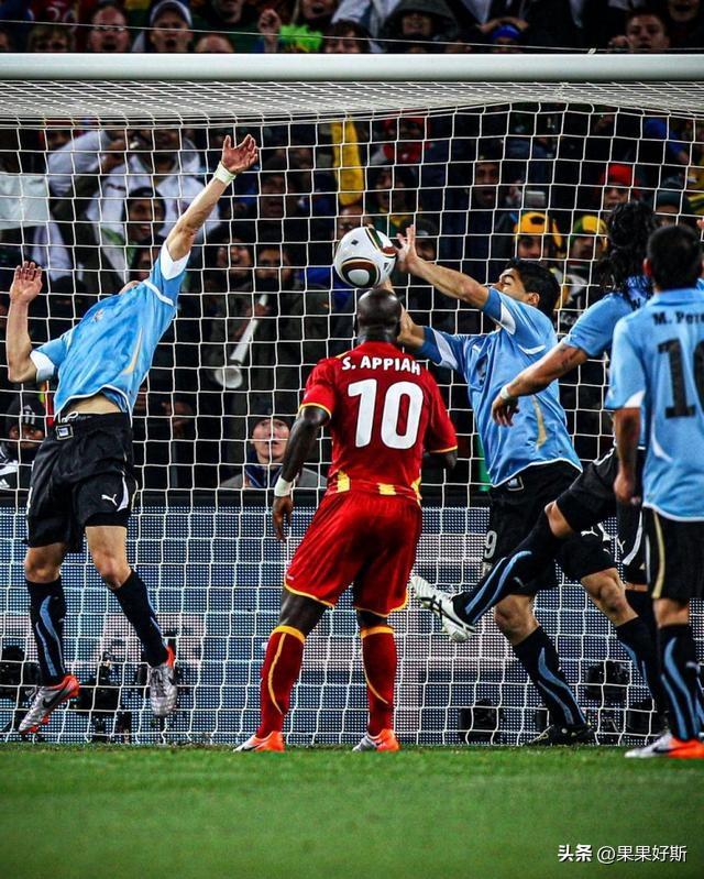 2010年南非世界杯1/4决赛,加纳对阵乌拉圭,蒙塔里助加纳取得领先,弗兰扳平比分,双方进入加时赛。加时赛最后时刻,苏亚雷斯门线前用手将加纳必进球挡出,苏亚雷斯被红牌罚下,加纳获点球,但是吉安罚丢点球,乌拉圭最终点球大战淘汰对手晋级。吉安错失点球后痛哭的场面和苏亚雷斯高兴狂奔的场面,形成鲜明对比。但结果无法更改,加纳被淘汰,无缘进入4强创造非洲足球新的历史,而乌拉圭进入4强,最后获得第3名。从此,两队结下梁子,没想到,2022年世界杯两队又再次相遇,真是不是冤家不聚头!