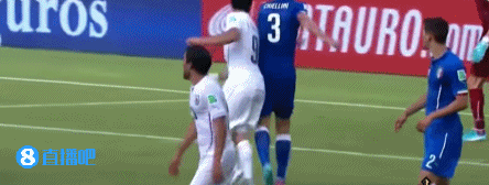 在比赛的第80分钟,苏亚雷斯和基耶利尼在禁区内纠缠在一起,在无球状态下苏亚雷斯不可思议地啃在基耶利尼的左肩上,基耶利尼倒地。裁判当时没有对苏亚雷斯进行判罚,基耶利尼甚至把球衣拽下,向众人展示苏亚雷斯留下的牙印。