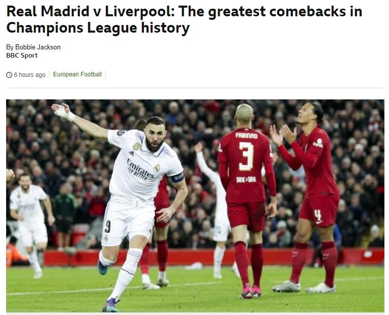 BBC在今日的文章中对欧冠淘汰赛历史上的大翻盘做出了回顾,99年欧冠决赛曼联补时绝杀,05年利物浦伊斯坦布尔奇迹,16-17赛季巴萨6-5巴黎在列。