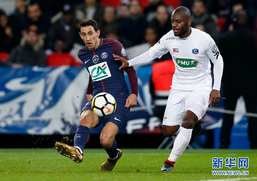 ↑1月24日,巴黎圣日耳曼队球员迪马利亚(左)在比赛中进攻。新华社/法新