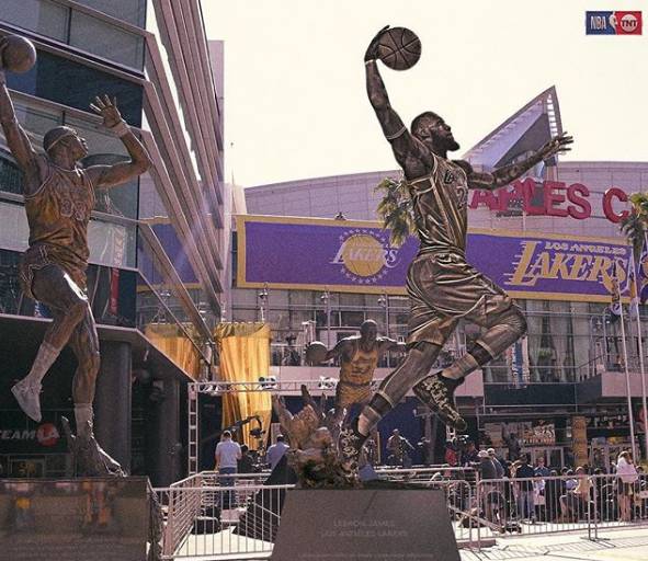 目前,斯台普斯球馆外已有多位湖人名宿的雕像,包括“魔术师”约翰逊、杰里-韦斯特、卡里姆-阿卜杜尔-贾巴尔、沙奎尔-奥尼尔和已故传奇解说员奇克-赫恩。