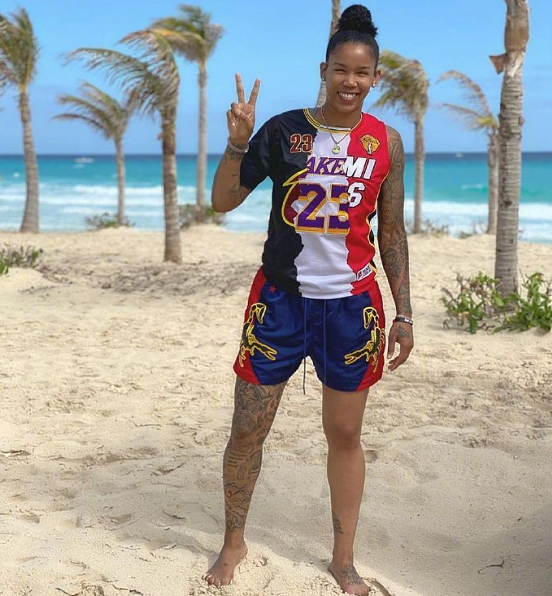 这是一名美女球迷,她将此前媒体发布的一张詹姆斯身穿骑士、热火和湖人混合版的球衣照片直接做出来了,球衣上骑士元素中有23号,热火元素是6号,湖人元素的地方则是23号,也都是詹姆斯在三支球队效力时候的号码。这位美女球迷穿着这件球衣在美丽的沙滩边上拍照,还摆出了胜利的手势,之后她摆出了多个姿势拍照,看起来她也非常满意。
