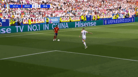 第51分钟,莫拉塔中前场中路拿球分边!亚马尔快速推进到禁区前沿后横传,奥尔莫突然插上推射破门!西班牙1-0领先德国↓