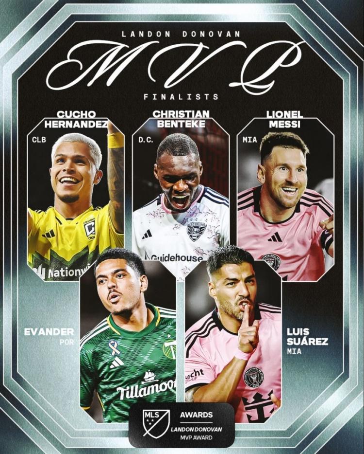 美职联赛季MVP终选名单:梅西领衔,苏亚雷斯、本特克在列