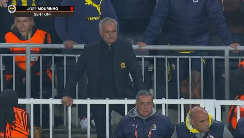 曼联vs费内巴切,穆里尼奥因抗议过激被直红罚下!穆帅生涯再添一红!