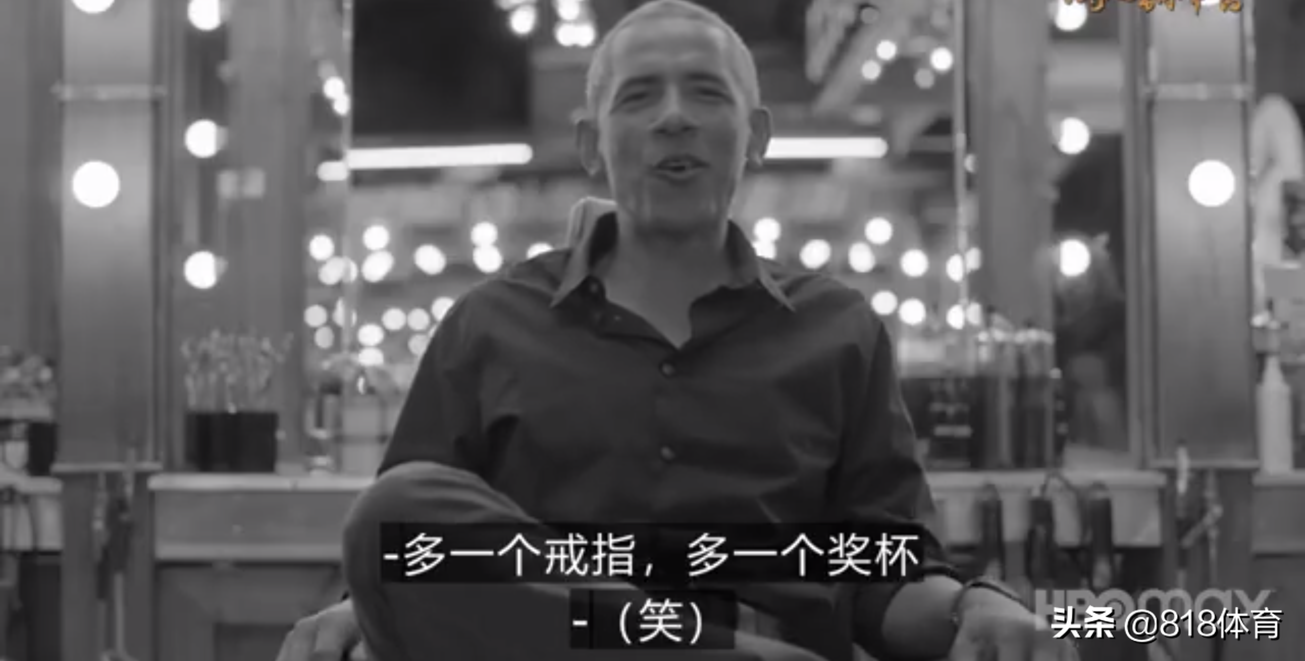奥巴马坐在理发椅上再次向詹姆斯表示祝贺,“多一个戒指,多一个奖杯。”