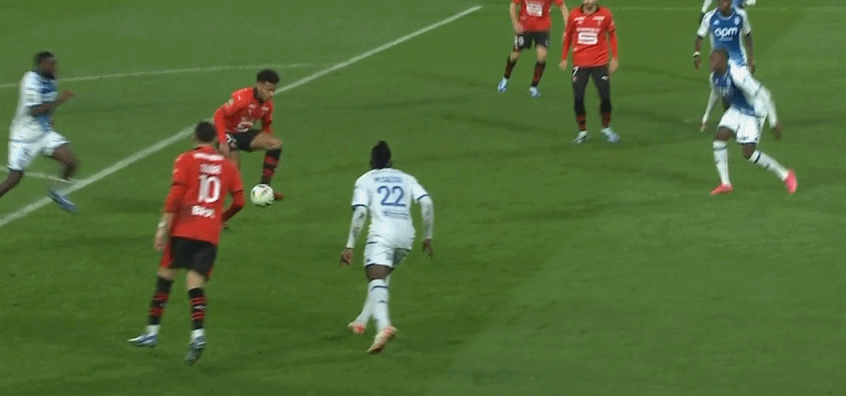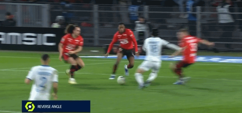 第90分钟,优素福-福法纳撞倒杜埃被判罚点球,布里若主罚命中!雷恩1-2