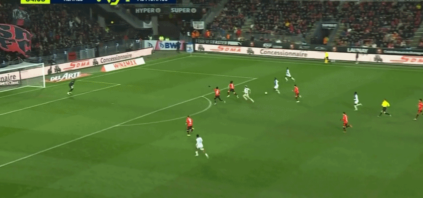 第11分钟,扳平比分,布拉斯轰入超远世界波,雷恩1-1