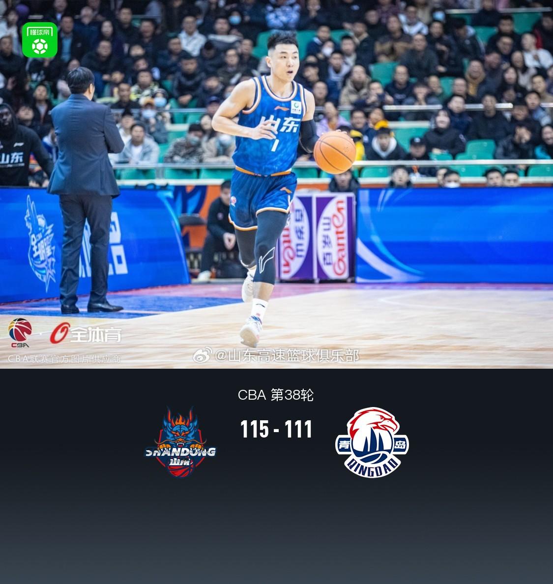第四节山东特洛伊-阿吉姆-吉伦沃特拿下21分,青岛迈尔斯-鲍威尔拿下12分,最终山东115-111战胜青岛