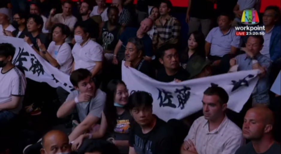 比赛在泰国也引起了极大反响,现场的泰国观众人头攒动,日本当地侨民也自发组成了助威团,拉起横幅为两届日本K-1冠军助威。