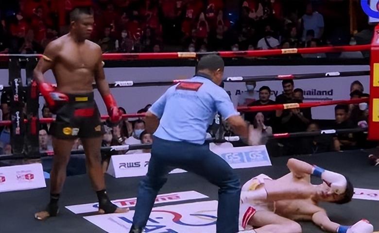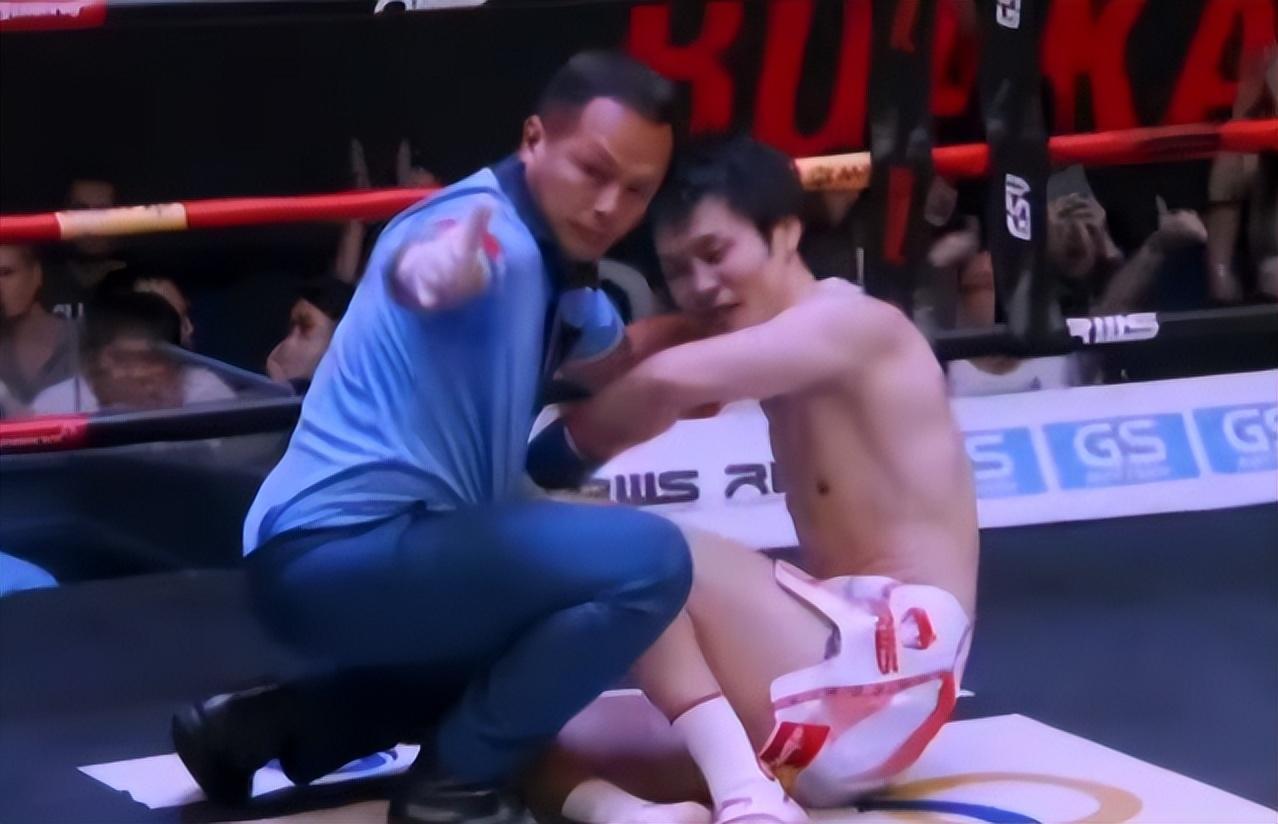 此拳极重!佐藤嘉洋倒地后,双腿已完全不听使唤,裁判连八都没数完,就宣布了比赛结束。
