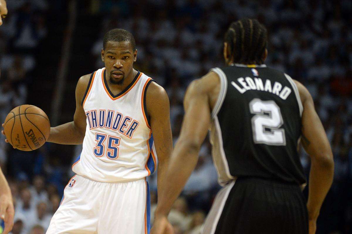 淘汰独行侠之后,雷霆要面对的马刺,此时GDP组合都还在,阿尔德里奇也已经加盟,伦纳德则成长为领袖球员。再加上丹尼-格林和大卫-韦斯特,马刺这套阵容的实力不在雷霆之下。