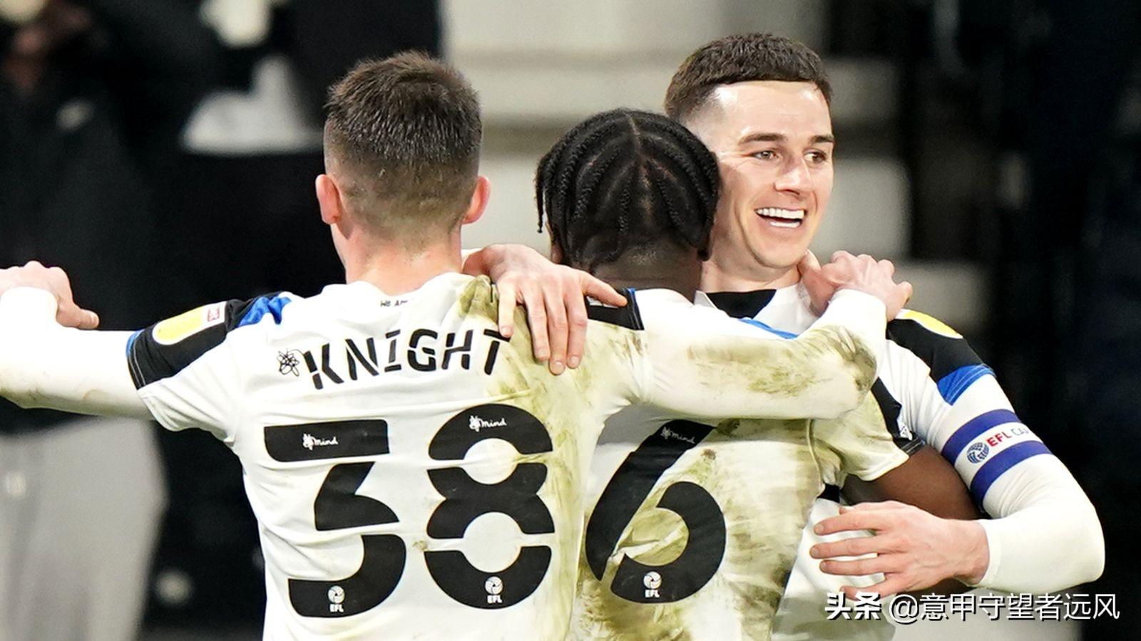 德比郡3比1赫尔城(19分钟福斯特,38分钟劳伦斯,47分钟埃博塞莱;65分钟福斯特乌龙)