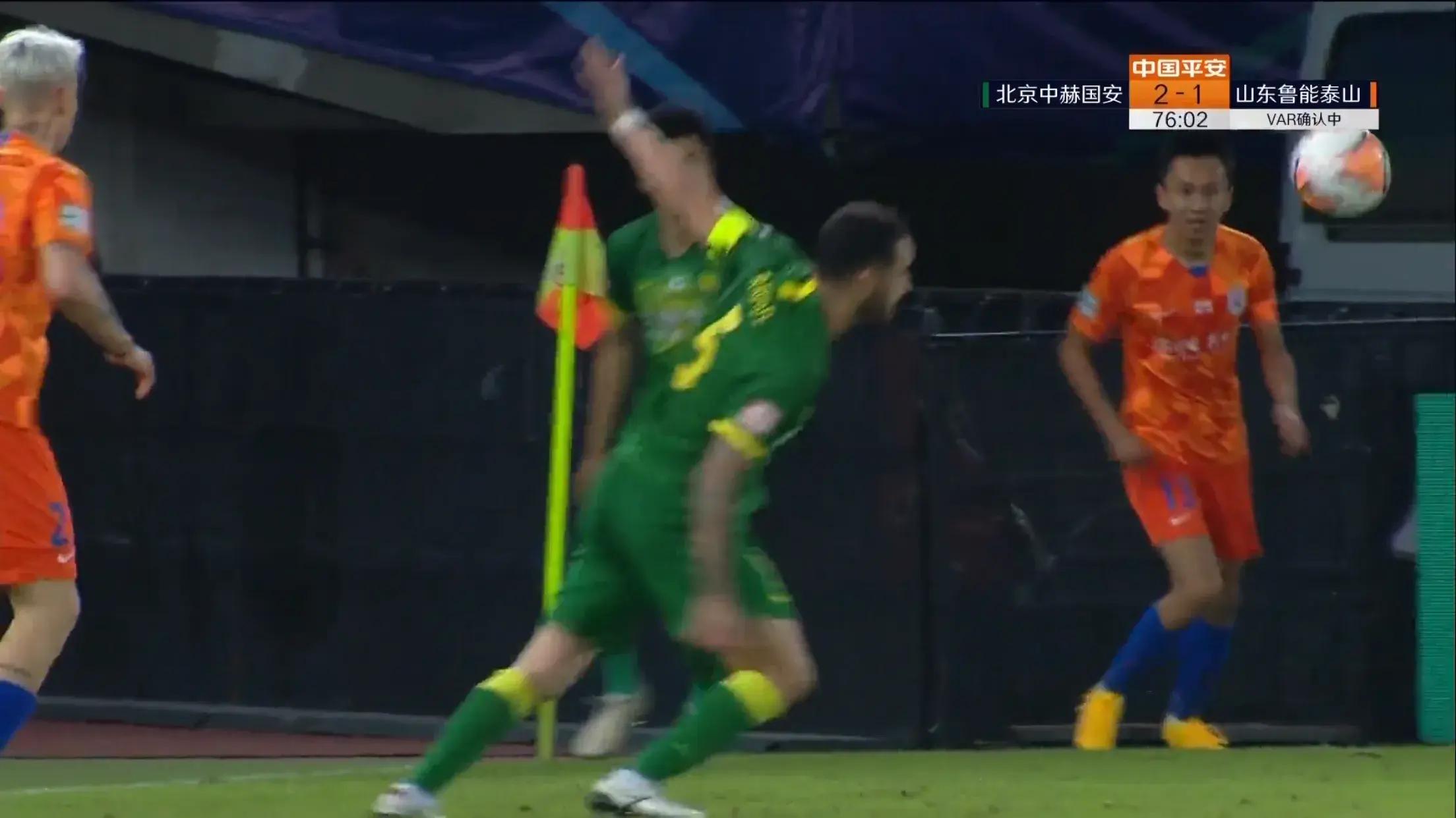 争议4:张驰失误,将球传给了国安奥古斯托,对方有一个张臂停球的动作,这个不清晰,感觉是打在手臂和肩膀之间。