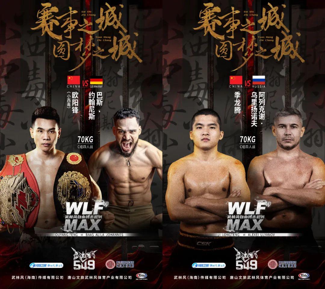 在此前结束的A、B组两组的对决中,来自于唐山文旅骁骑格斗的“金刚”韩文豹接连战胜迪兹尼斯·祖耶夫和江通猜,率先杀入年终总决赛,罗马尼亚“极恶地灵”玛利安连克陈涌辉与瓦西里·谢苗诺夫,逆袭出线。2024年10月26日,武林风549,欧阳锋、巴斯·约翰尼斯、季龙腾、阿列克谢·乌里扬诺夫将打响WLF MAX70KG C组四人战。