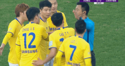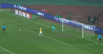 第3轮,苏宁的谢鹏飞命中,泰达的宋岳主罚的点球虽然被顾超扑了一下,但仍然钻入球网,2-2;