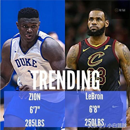 蔡恩-威廉森身高6尺7寸(2.01米),体重258磅(约258斤),勒布朗-詹姆斯身高6尺8寸(2.03米),体重250磅(约227斤),很多人都称威廉森是下一个勒布朗-詹姆斯,因为他的体重比詹姆斯重31斤,但他的爆发力、运动能力、弹跳能力丝毫不比詹姆斯差。但也有媒体认为威廉森的体重会成为他选秀的负累!很可能让他无缘状元秀,甚至是前三顺位。
