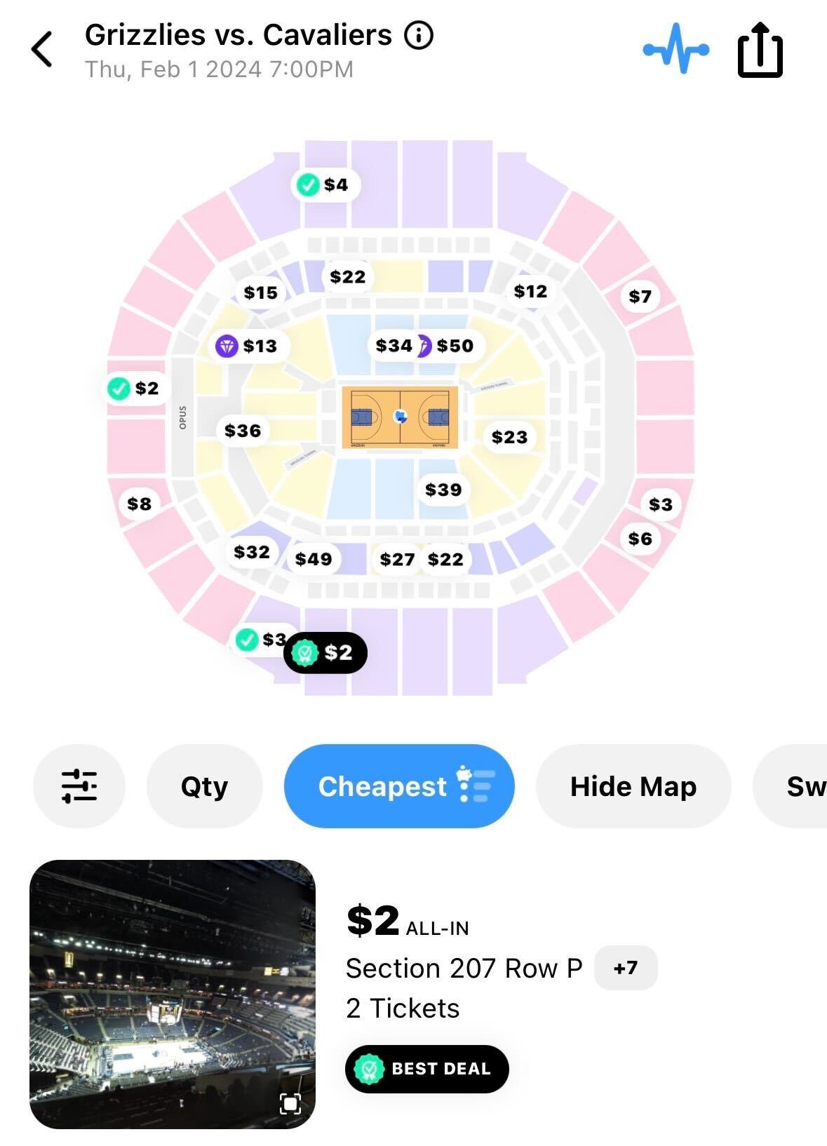 票务系统显示,本场比赛的入场价(最低售价)已经低至2美元/2张(不含服务费)。