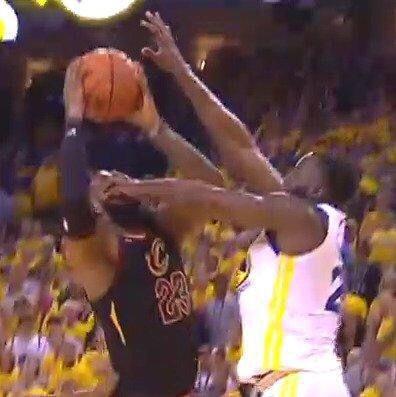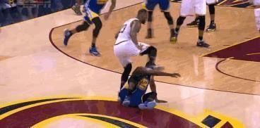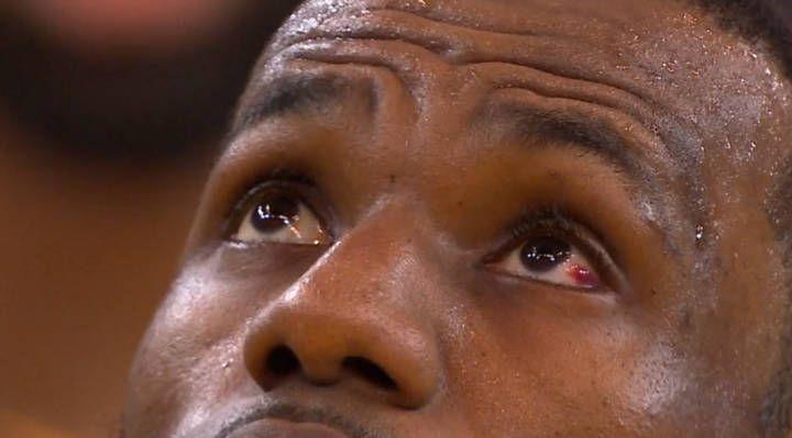 就在今年的第一场总决赛中,格林就再次送给了詹姆斯“一份大礼”。在上半场比赛中,詹姆斯突破到篮下,协防的格林直接戳到了詹姆斯的眼睛,导致詹姆斯倒地不起。从慢动作来看,格林的左手很有可能不是奔着球,而是直接奔人而去!得了便宜的格林还是不饶人,他嘴里还一直骂着fucking pussy(TMD怂货)!而詹皇的眼睛直接被戳出了血块!