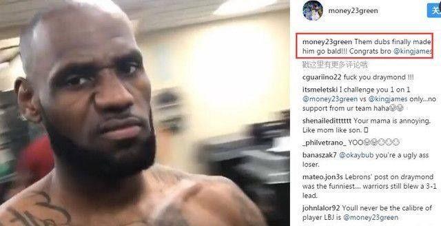 看到了格林的挑衅,詹皇立刻在社交媒体上反击:这就是她说的,对吧?(Quickie拼写类似于英语中的quick)。而当詹皇晒出削发明志的照片后,格林又讽刺道:我们把你打秃了,恭喜啊兄弟!两人之间的斗争,互有来回,实在精彩!