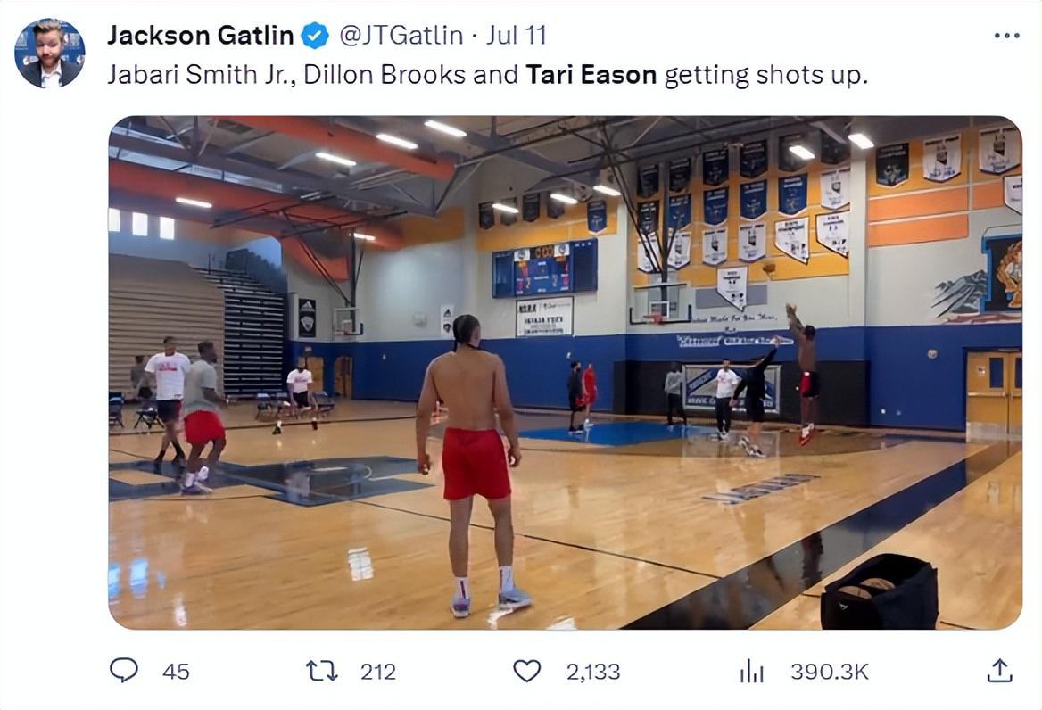 三天之前,小贾巴里史密斯、伊森、狄龙三人曾一同合训,这个夏天伊森、小史密斯几乎都在一起苦练,这两人的肌肉维度明显增加。