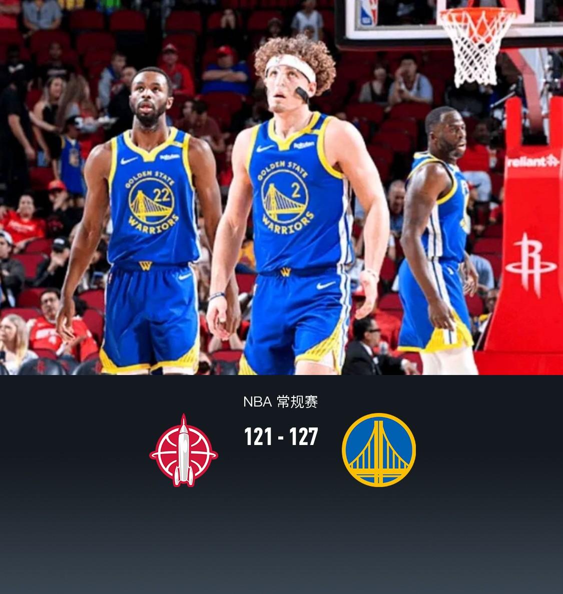 加时赛,勇士库明加站出来连续冲框得分,帮助球队再度取得领先占据先机,火箭阿门、伊森等人也出现受伤体能脱节状况,火箭无力反扑,全场结束,勇士加时127-121火箭。
