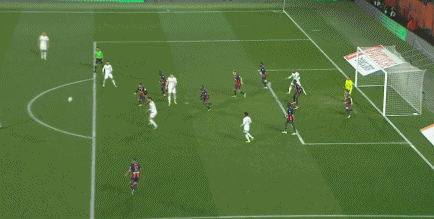第45+1分钟,本拉赫马任意球攻门,皮球稍稍偏出