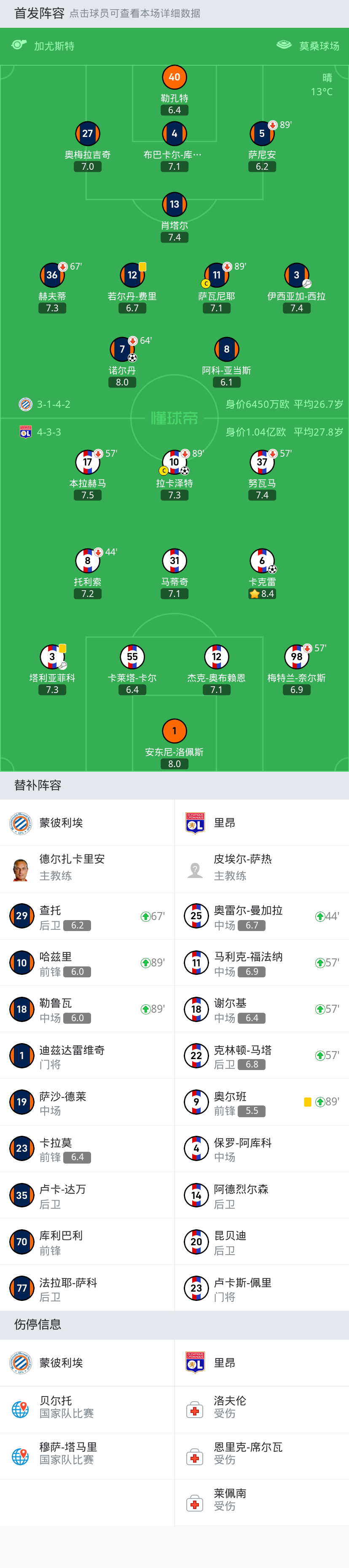 北京时间2月12日法甲联赛第21轮,蒙彼利埃主场对阵里昂。
