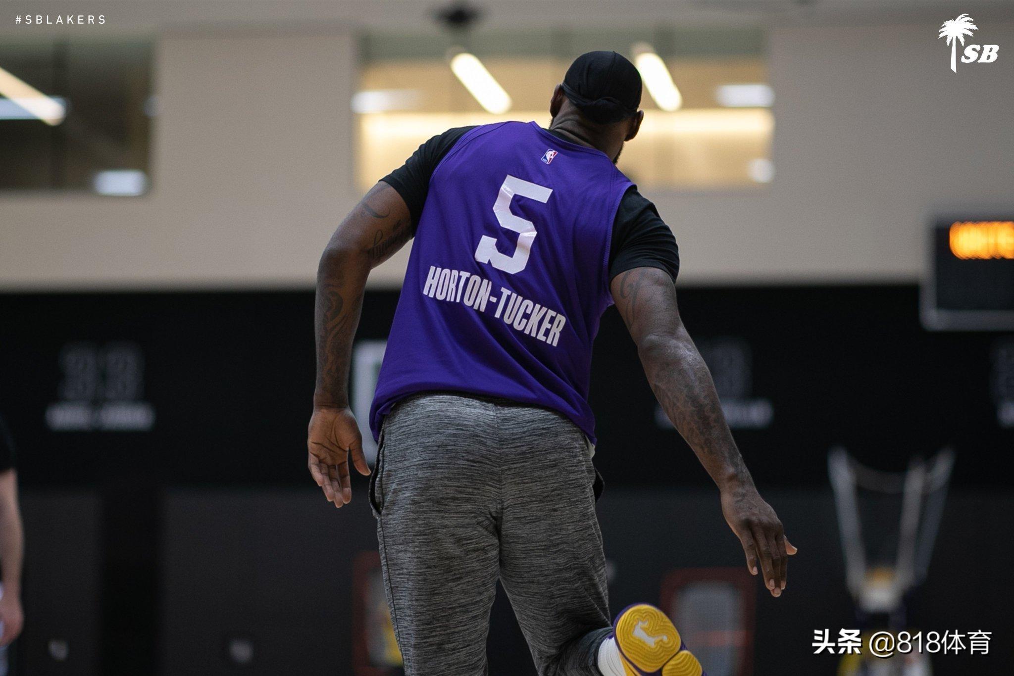 有趣的是,湖人前锋勒布朗-詹姆斯训练中穿上了新秀队友塔伦-霍顿-塔克的。